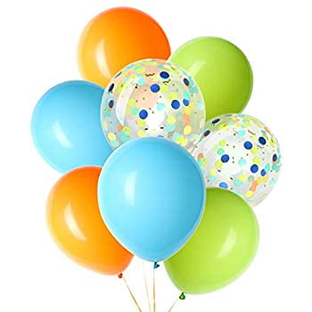 Amazon Com 60 Pieces 12 Inch Orange Light Blue Fruit Green Latex Balloons With Confetti Balloon Dinosaur Balloons And Ribbon For Jungle Jurassic Birthday Party Decorations Supplies Toys Games