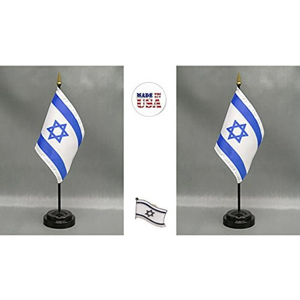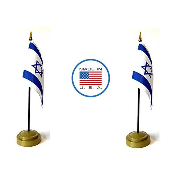 Made In The Usa Flag Set 2 Israel Rayon 4 X6 Miniature Office Desk Little Hand Waving Table Flags Includes 2 Bronze Flag Stands 2 Small Mini Israeli Stick Flags