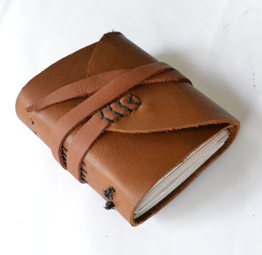 Fair Trade Leather Notebook Folding Flap And Tie 2 Sizes Handmade In Mero Retro