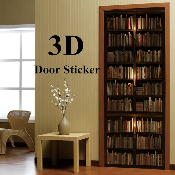 77 0cm 3d Door Wall Sticker Waterproof Decoration Self Adhesive Retro Bookshelf Decal Home Decor Wallpaper Art Decor Walmart Com Walmart Com