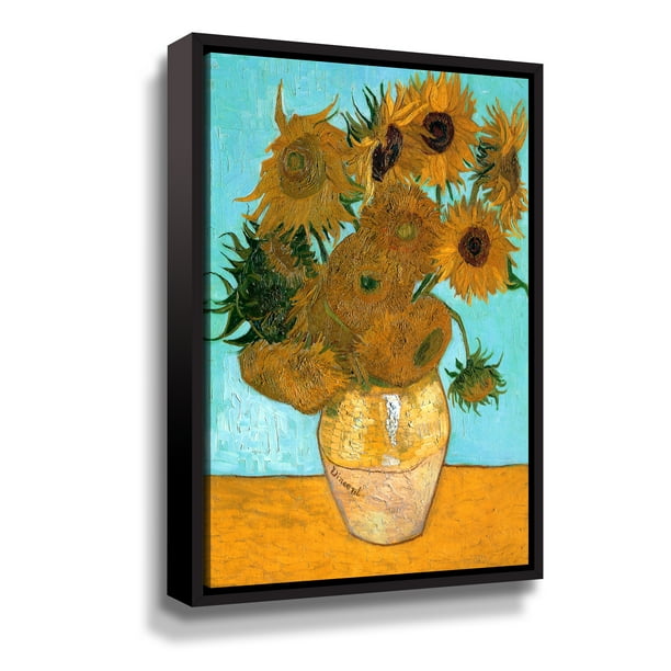 Vases With Twelve Sunflowers Gallery Wrapped Floater Framed Canvas Art Print 18x24 Walmart Com Walmart Com