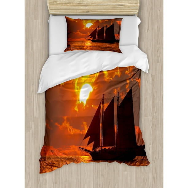 Sailboat Duvet Cover Set A Boat Sailing In Front Of A Sunset In Key West Florida Sundown Tropical Decorative Bedding Set With Pillow Shams Orange Dark Orange By Ambesonne Walmart Com