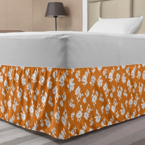 Retro Bed Skirt Botanical Arrangement Of Flowers On A Dotted Background Elastic Bedskirt Dust Ruffle Wrap Around For Bedding Decor 4 Sizes Dark Orange Grey White By Ambesonne Walmart Com Walmart Com