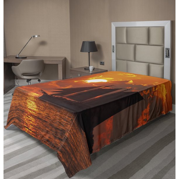 Sailboat Flat Sheet Boat Sailing In Front Of Sunset In Key West Floridsundown Tropical Soft Comfortable Top Sheet Decorative Bedding 1 Piece 6 Sizes Orange Dark Orange By Ambesonne Walmart Com Walmart Com
