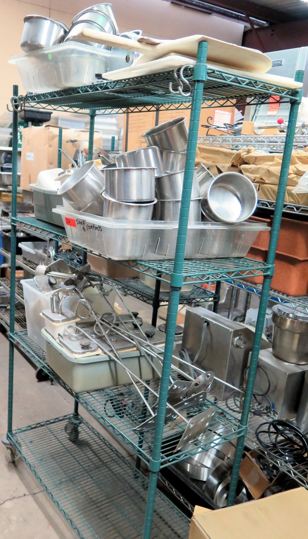 Green Metal Wire Shelving Unit Contents Pots Ice Cream Topping Dispenser Etc Oahu Auctions