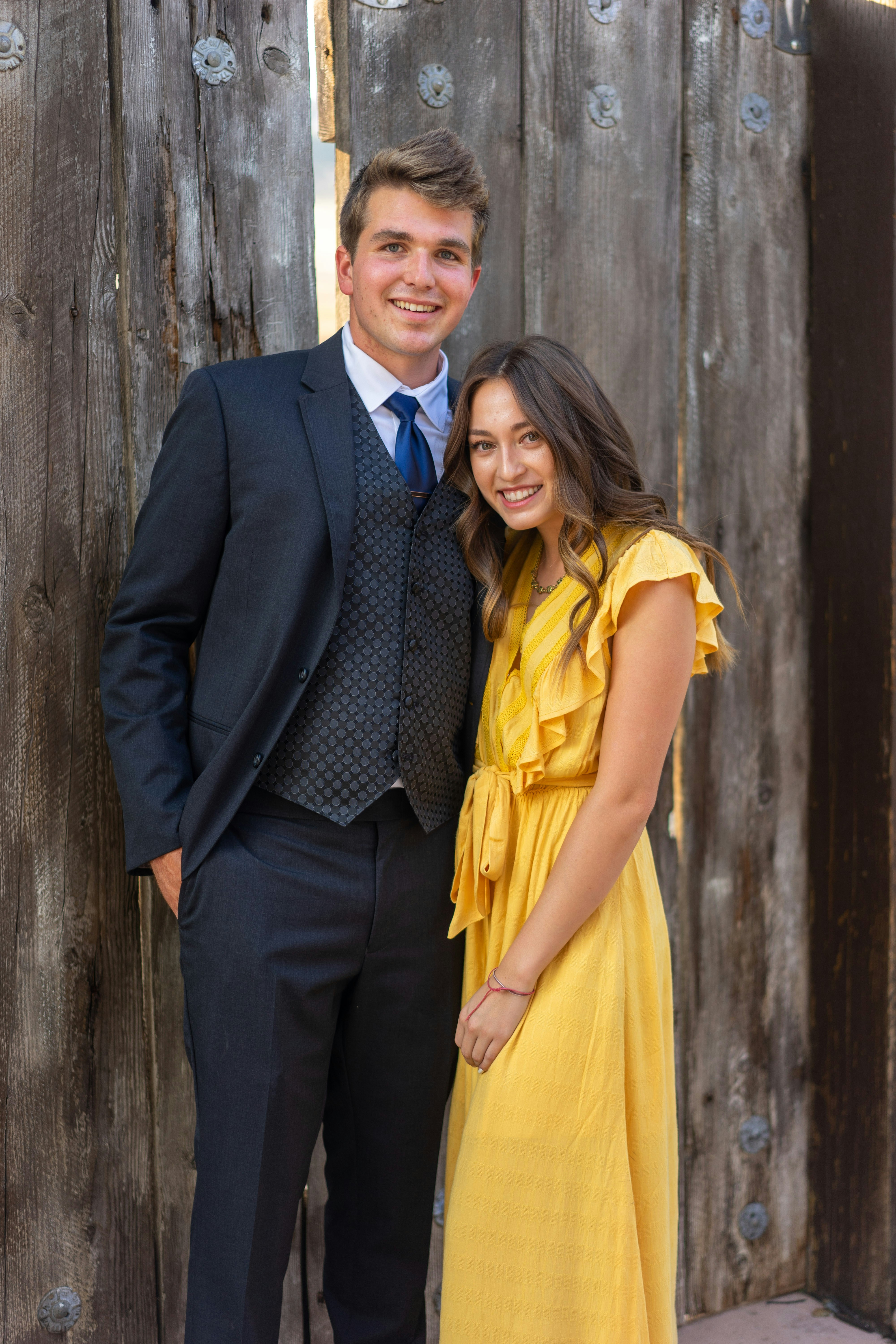 Man In Black Suit Jacket Standing Beside Woman In Yellow Dress Photo Free Apparel Image On Unsplash
