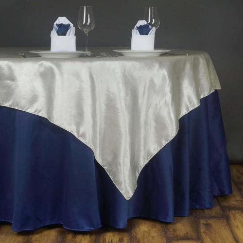 90 Silver Satin Overlay Seamless Square Table Overlays Tableclothsfactory