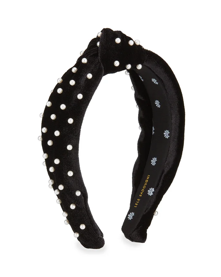 Desert Tan Pearl Knotted Velvet Headband Lele Sadoughi