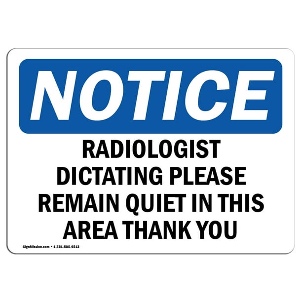 Osha Notice Radiologist Dictating Please Remain Quiet Sign Heavy Duty Walmart Com Walmart Com