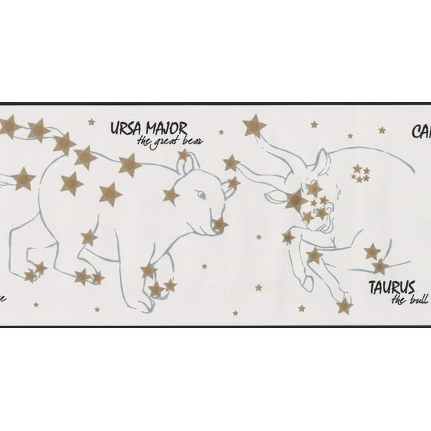 Wallpaper Border Night Sky With Marked Constellations Stars White Wall Border For Kids Bedroom Bathroom Roll 15 Ft X 7 In Walmart Com Walmart Com