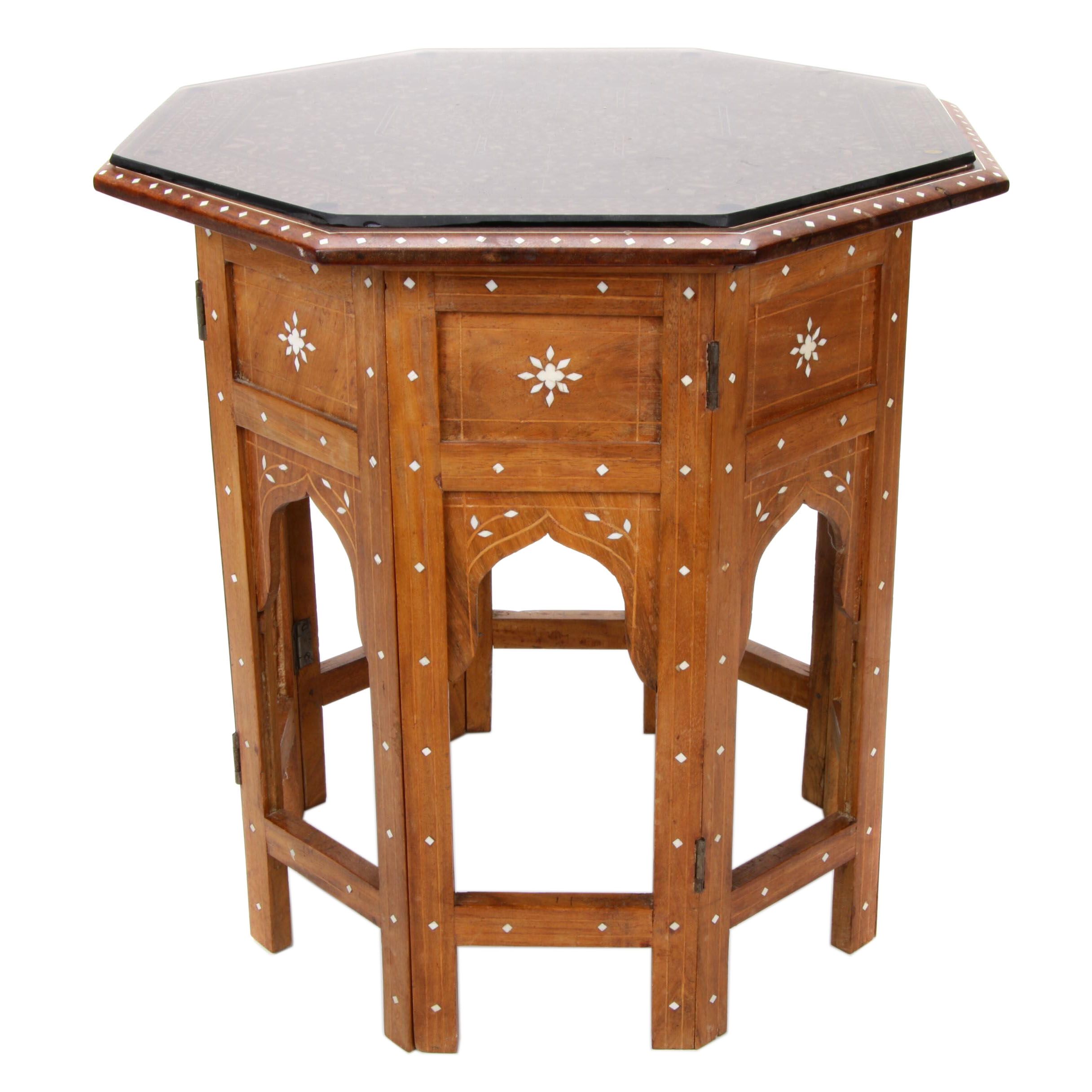 Moroccan Style Octagonal Accent Table In Wood With Bone Inlay Ebth