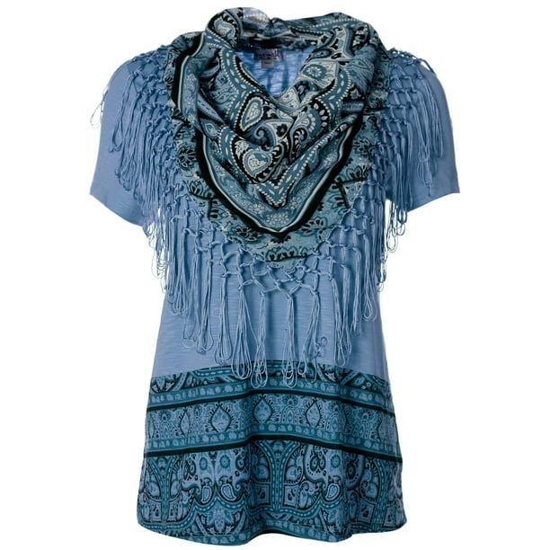 Oneworld Oneworld Womens Short Sleeve Scarf Top Walmart Com Walmart Com