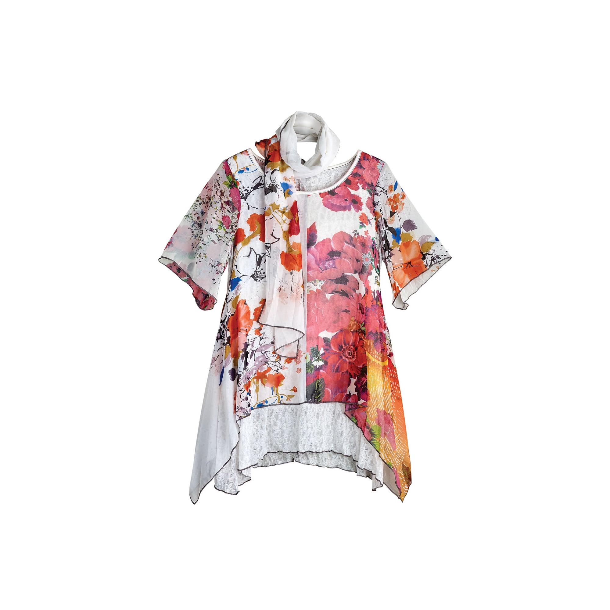 Catalog Classics Women S Tunic Top Scarf Set Dreamy Garden Short Sleeve Blouse High Low Hem Walmart Com Walmart Com