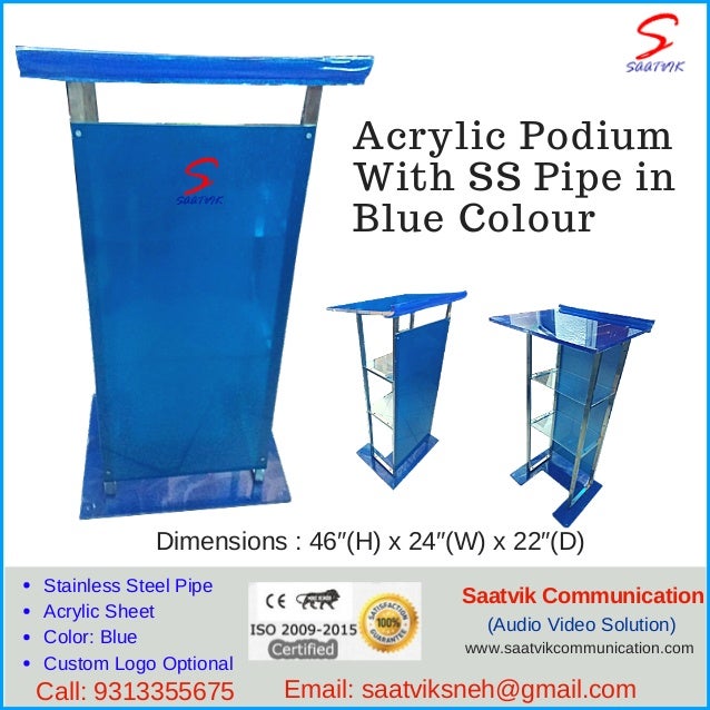 Acrylic And Stainless Steel Blue Podium Saatvik Sp 115