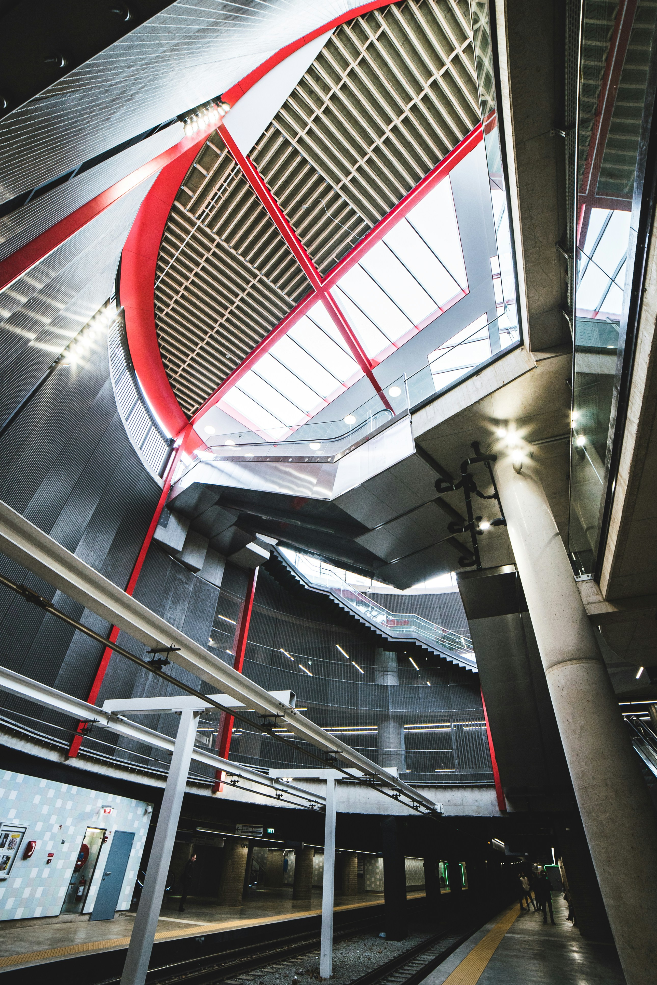 White And Red Spiral Staircase Photo Free Building Image On Unsplash