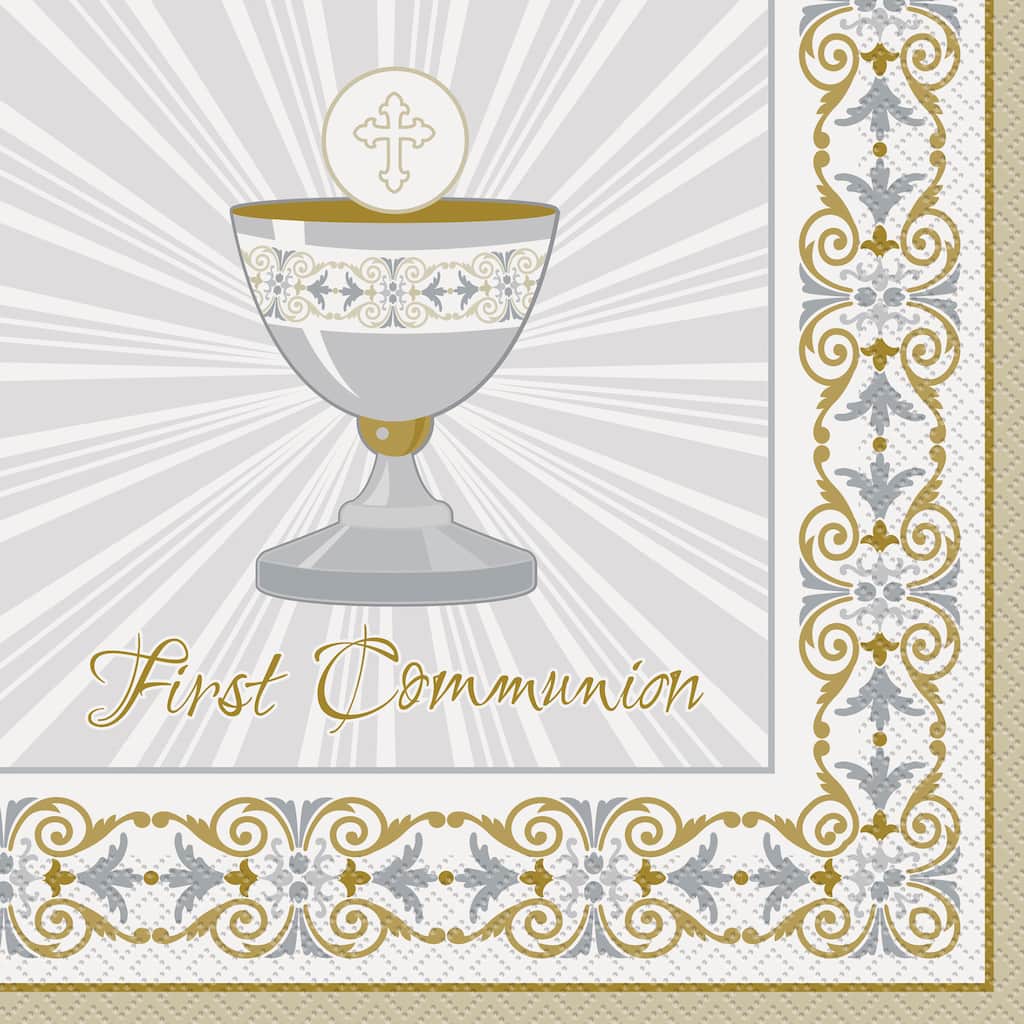 Radiant Gold And Silver Cross First Communion Napkins 1st Communion Napkins And Tableware