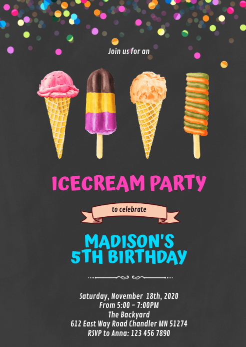 Ice Cream Birthday Party Invite Template Postermywall