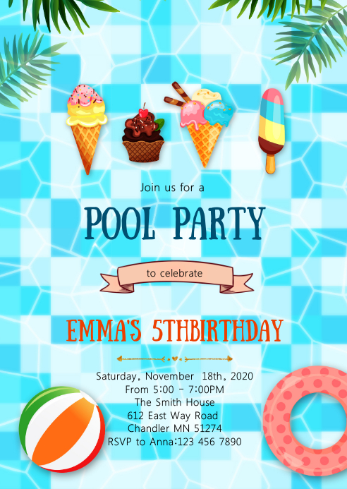 Ice Cream Pool Birthday Party Invitation Template Postermywall