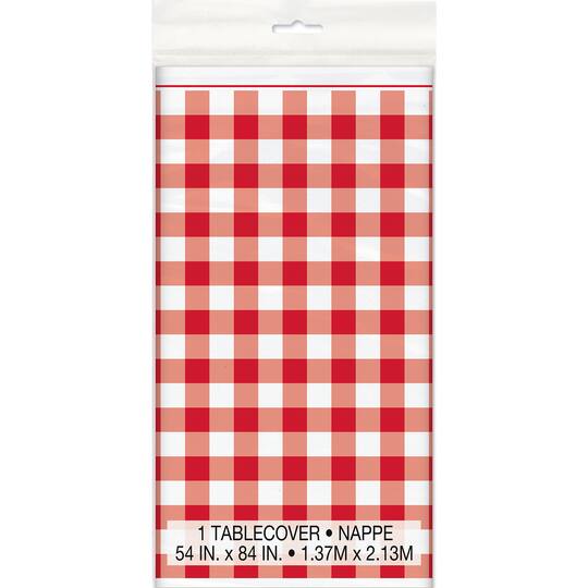 Red Gingham Plastic Table Cover 54 In X 108in Party City