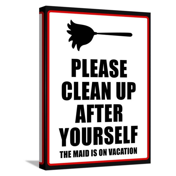 Clean Up After Yourself The Maid Is On Vacation Sign Poster Gallery Wrapped Canvas Print Wall Art Walmart Com Walmart Com