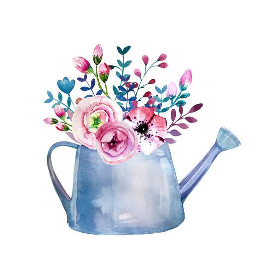 Turquoise Wateringcan Roses Watercolor Shabby Chic Stock Photo Edit Now