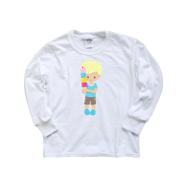 Boy With Ice Cream Blond Hair Blue Shirt Shorts Youth Long Sleeve T Shirt Walmart Com Walmart Com