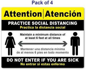 Social Distancing Sticker English Sign Virus Business Store Red 4 Spanish