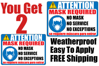 Mask Required Sign No Mask No Service English Spanish Door Window Decal Ebay