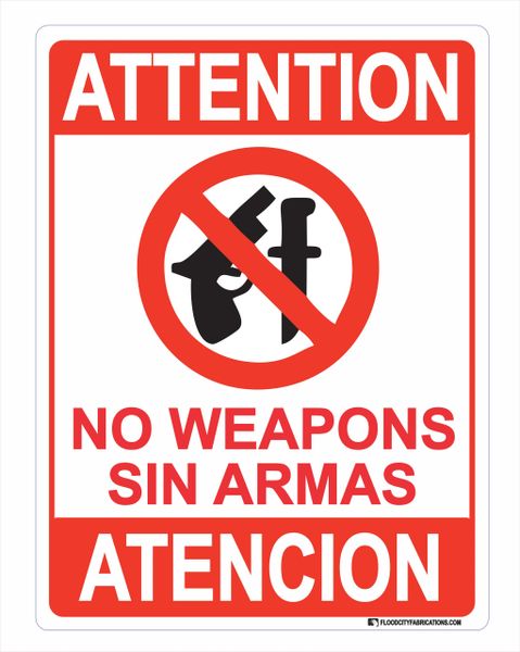 Spanish And English No Weapons Sign Sin Armas Attention Atencion