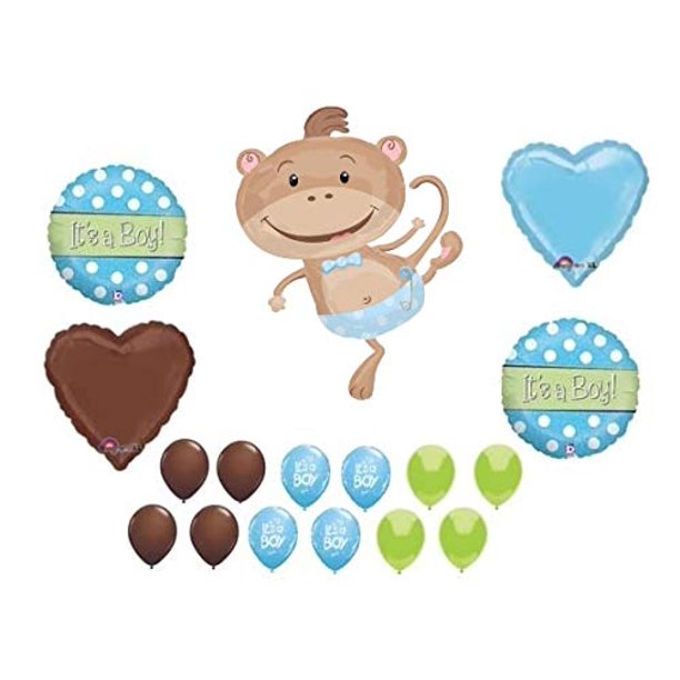 Dalvaydelights Monkey Diaper Bow Tie It S A Boy Baby Shower 17 Safari Jungle Balloons Set Walmart Com Walmart Com