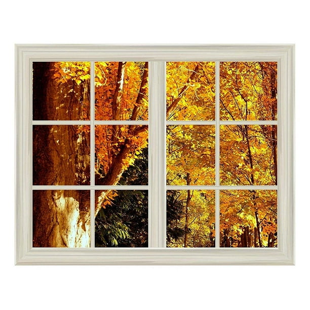 Sumgar 3d Wall Mural Woodland Autumn Window Views Wall Art Self Stick Decals For No Window Rooms 48x36 Inch Amazon Com