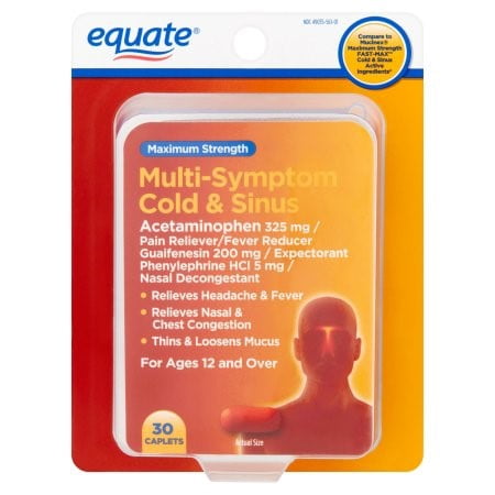 Equate Maximum Strength Multi Symptom Cold Sinus Acetaminophen Caplets 325 Mg 30 Ct Walmart Com Walmart Com