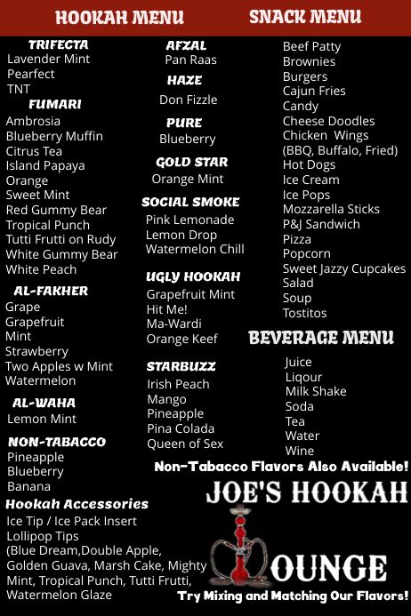 Hookah Cafe Menu Hubbly Bubbly Hookah Hookah Lounge Cafe Menu