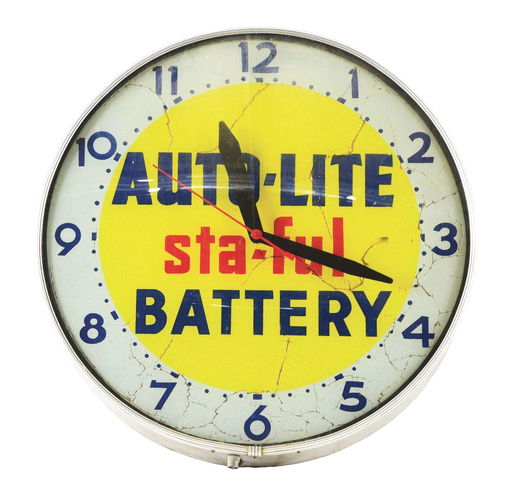 Auto Lite Sta Full Batteries Glass Face Light Up Clock Oct 07 19 Dan Morphy Auctions In Pa