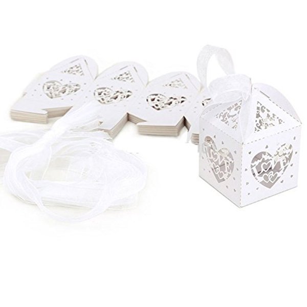 Homemaxs 50pcs Love Heart Cut Favor Candy Box With Ribbons Bridal Shower Wedding Party Favors White Walmart Com Walmart Com