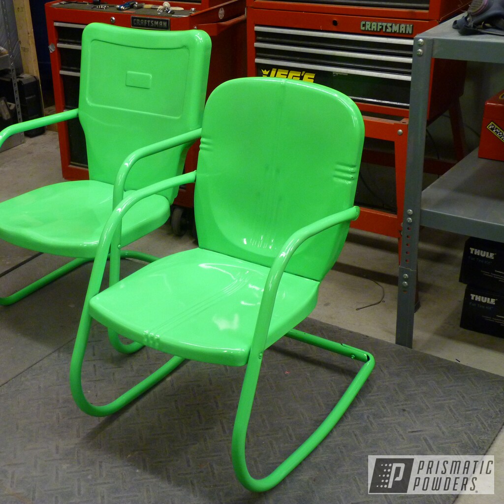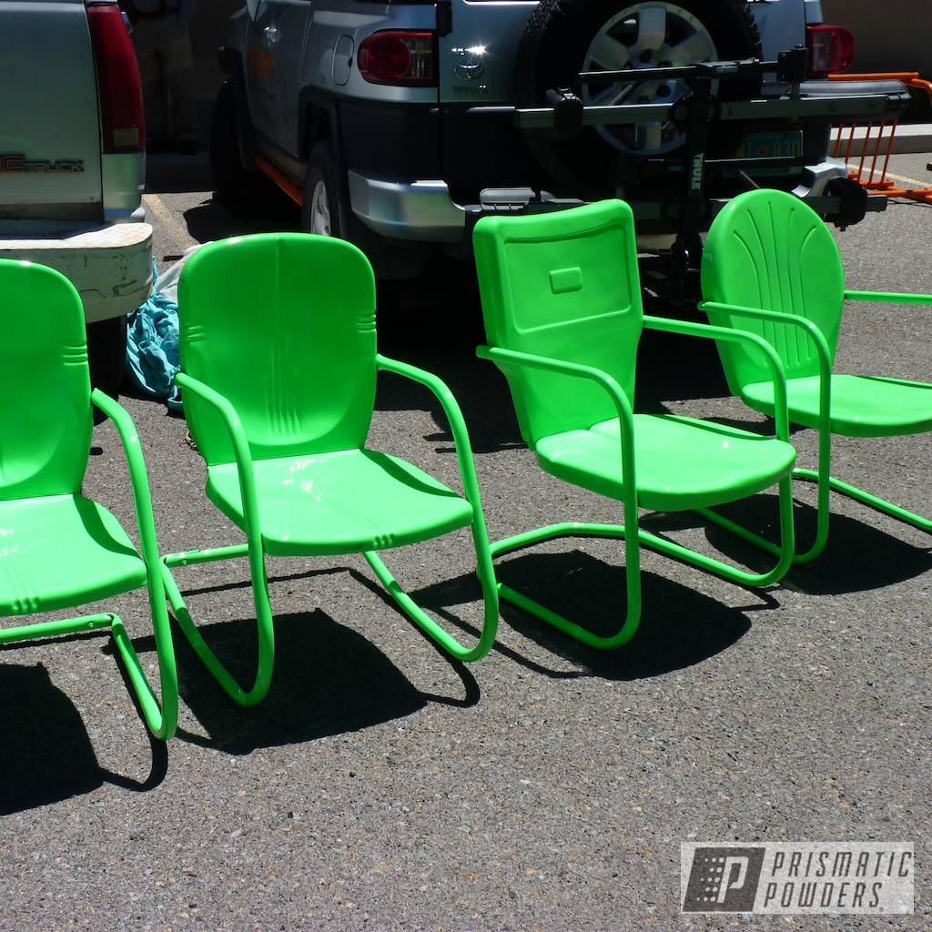 Powder Coated Patio Furniture In Neon Green And Casper Clear Prismatic Powders