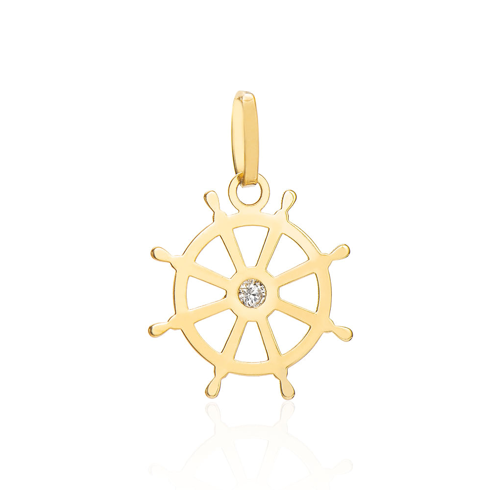 Pingente De Ouro 18k Leme De Barco Com Zirconia Pi Joiasgold