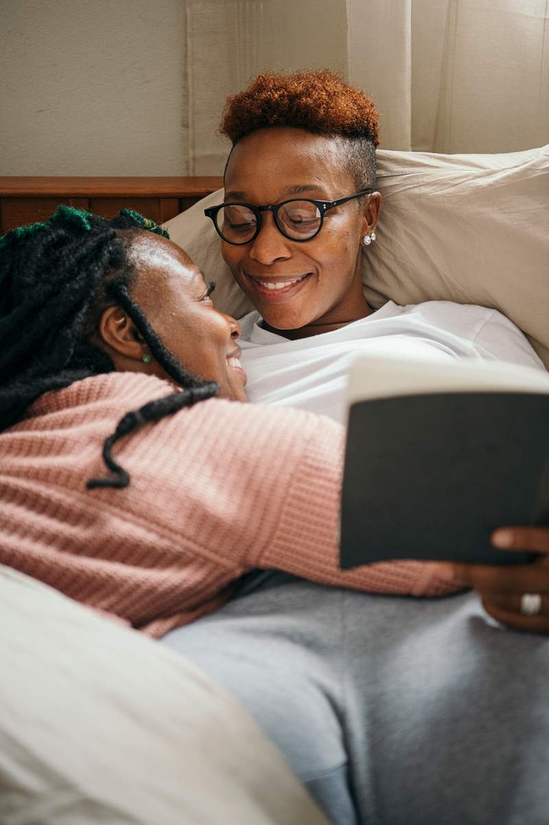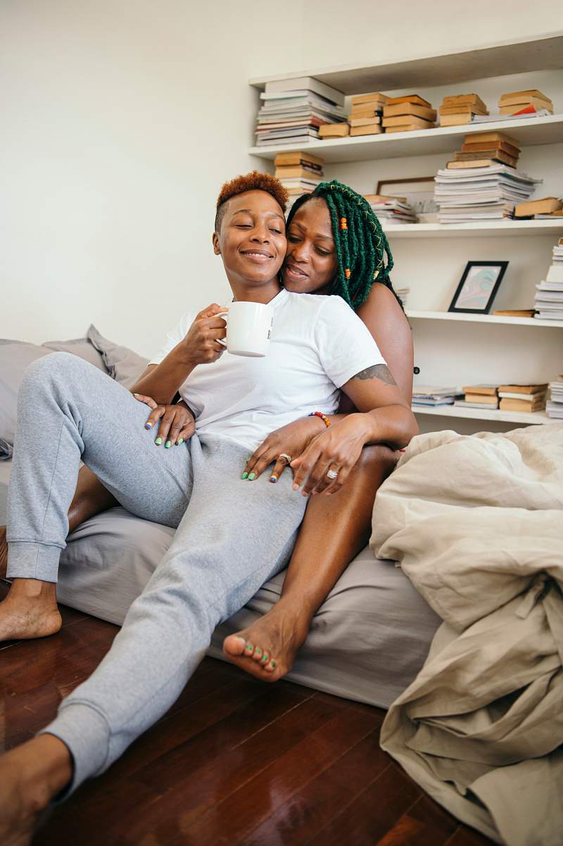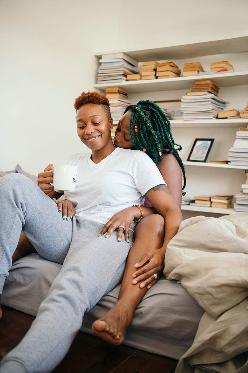 Lesbian Couple Cuddling In Bed High Res Stock Photo Getty Images