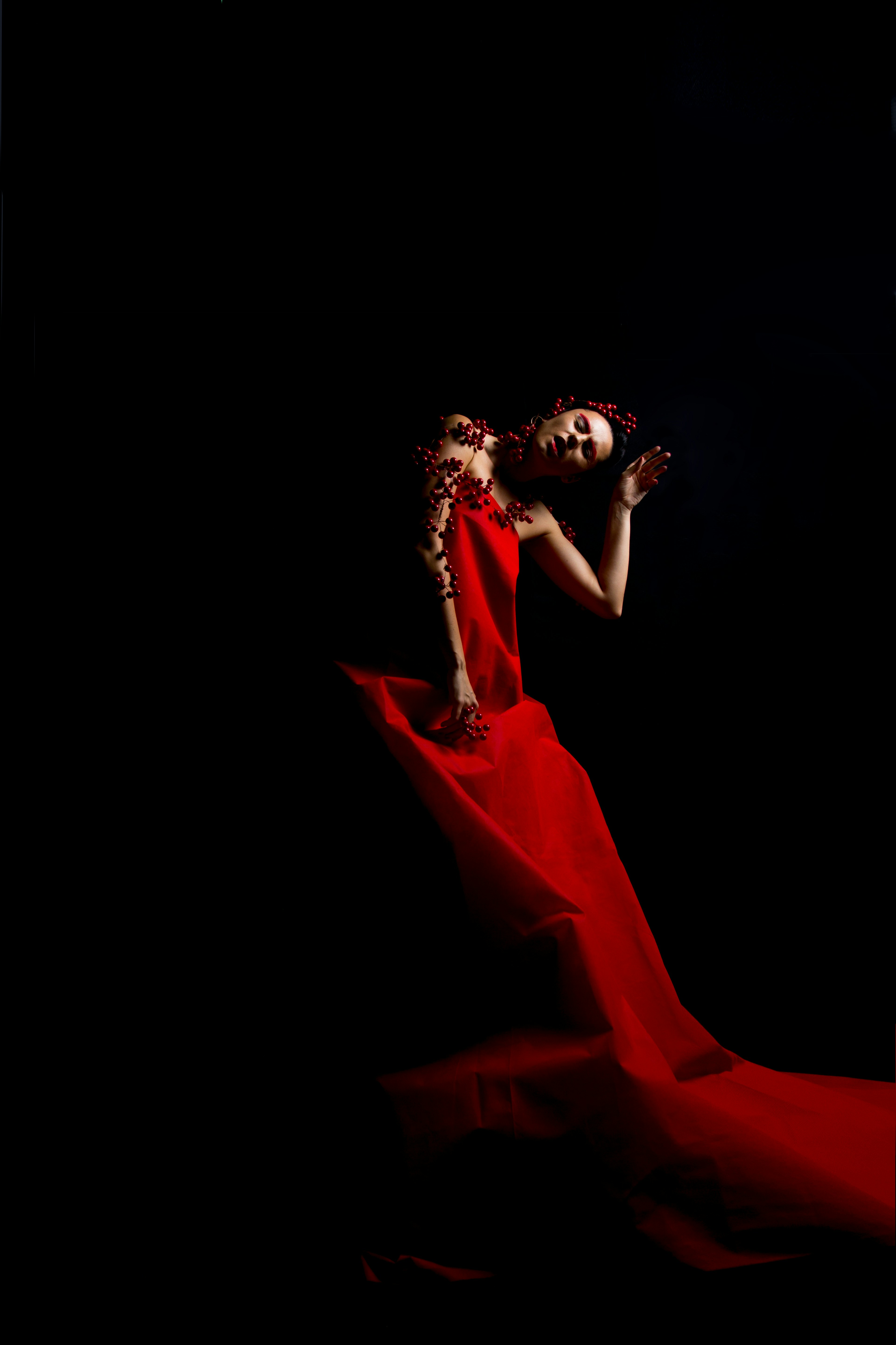 Woman Dancing In Silk Dress Artistic Red Blowing Stock Photo Megapixl