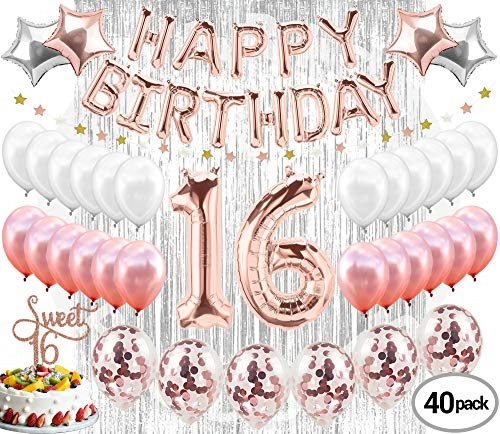 Amazon Com Jotom Sweet 16th Birthday Decorations Party Supplies Happy Birthday Banner Latex And Confetti Party Balloons Rose Gold Number 16 Birthday Balloons Birthday Decorations 16th Birthday Decorations Toys Games