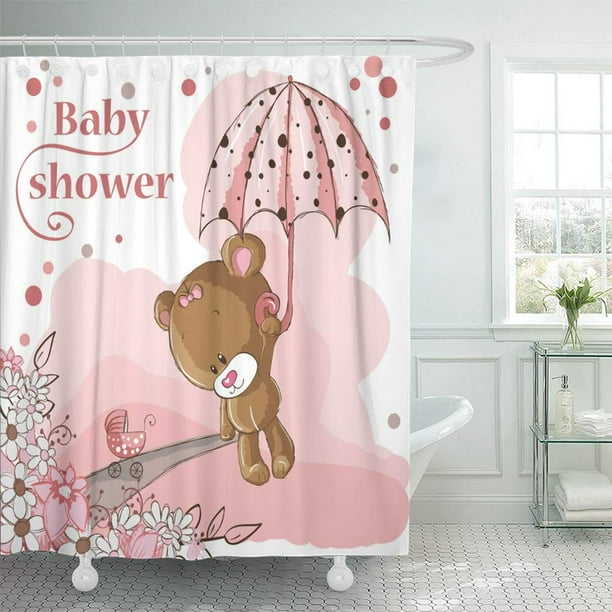 Pknmt Pink Love Baby Girl Bear And Umbrella Cartoon Congratulations Teddy Animal Greeting Bathroom Shower Curtain 66x72 Inch Walmart Com Walmart Com