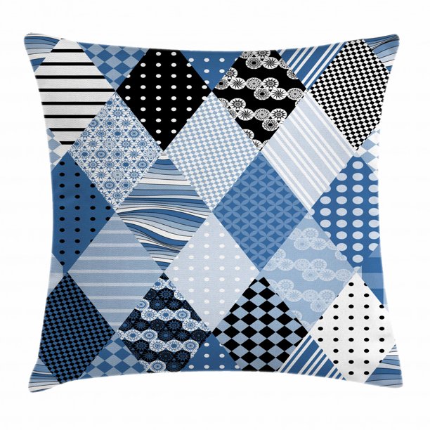 Farmhouse Decor Throw Pillow Cushion Cover Geometric Diamond Shaped Lines With Various Nostalgic Fashioned Old Pattern Decorative Square Accent Pillow Case 16 X 16 Inches Blue Black By Ambesonne Walmart Com Walmart Com