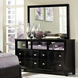 Homelegance Jacqueline Mirrored Drawer Front Dresser W Mirror In Black Faux Alligator
