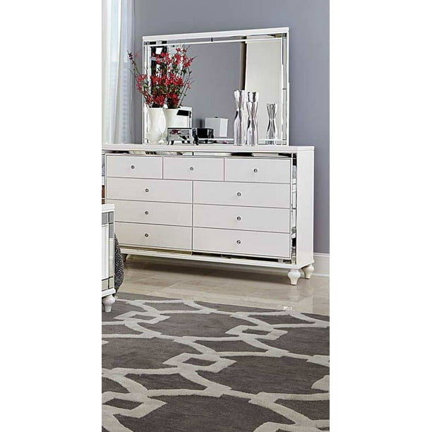 Ashland 9 Drawer Dresser Mirror Set In Modern White Embossed Alligator Mirror Walmart Com Walmart Com