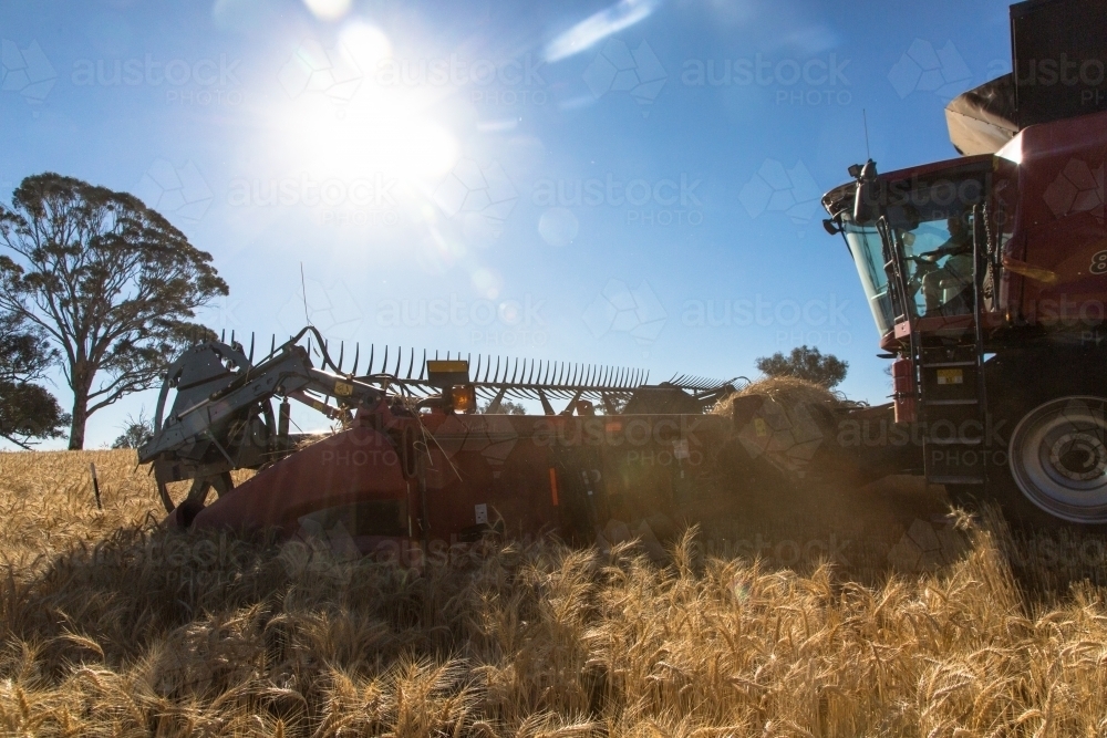 Image Of Combine Harvester Harvesting Wheat Crop With Sunlight Flare Austockphoto