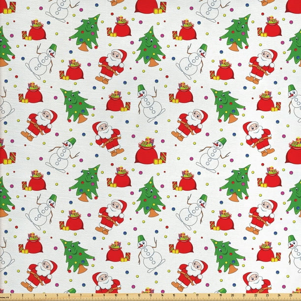 Christmas Fabric By The Yard Xmas Santa Claus Tree On Colorful Polka Dot Backdrop Surprise Boxes Artwork Decorative Fabric For Upholstery And Home Accents By Ambesonne Walmart Com Walmart Com