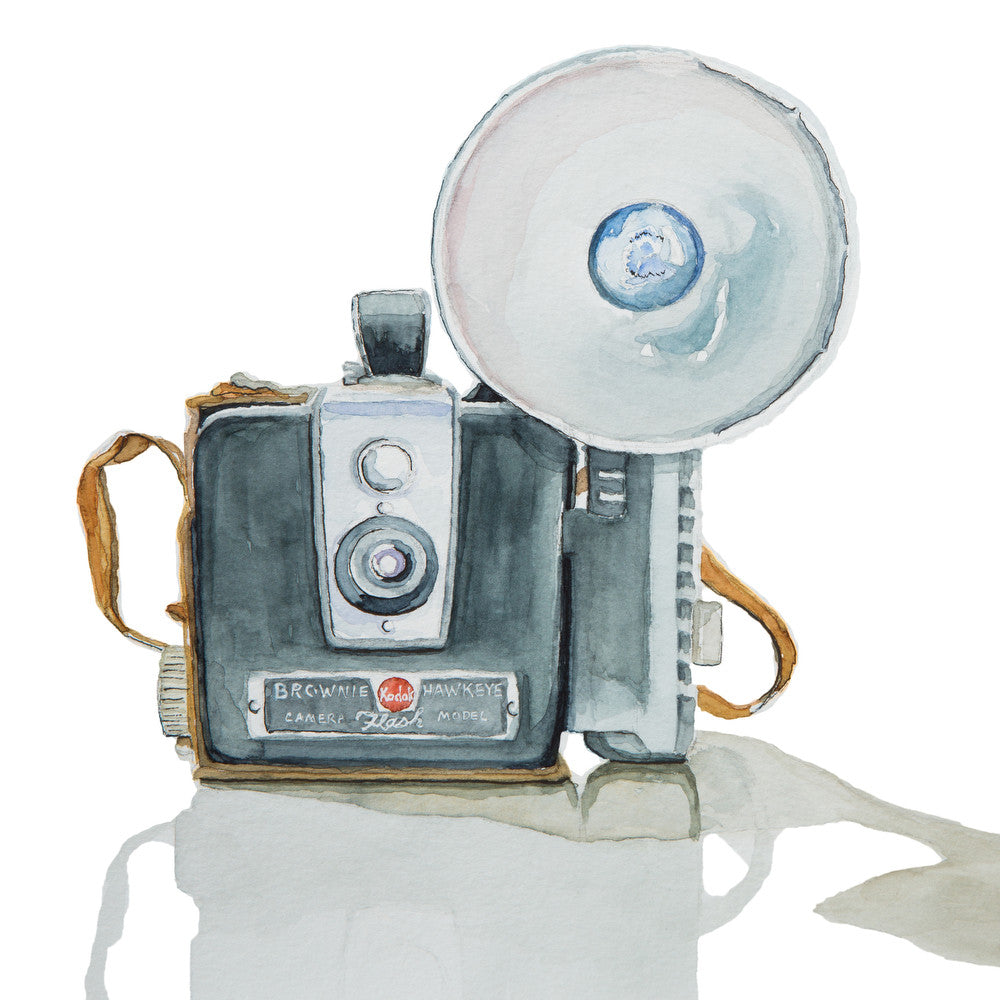 Print Collection Kodak Brownie Hawkeye Camera With Flash And Case Watercolor Painting