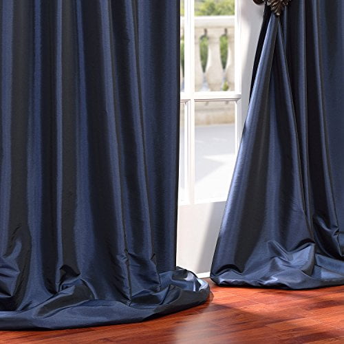 Exclusive Fabrics Furnishings Navy Blue Grommet Blackout Faux Silk Taffeta Curtain 50 In W X 108 In L Ph B 108g The Home Depot