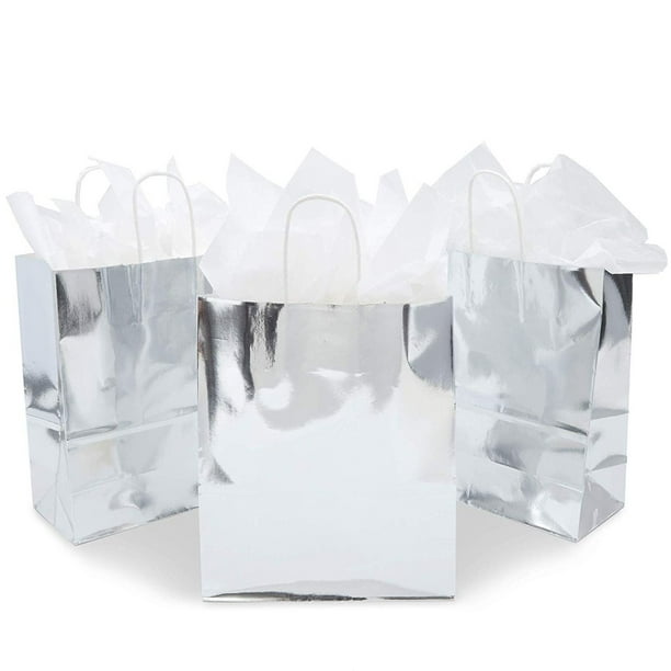 15x Metallic Silver Foil Paper Gift Bag With Handles And Tissue Papers For Birthday Wedding Baby And Bridal Shower Graduation 10 X 8 X 4 Inches Walmart Com Walmart Com