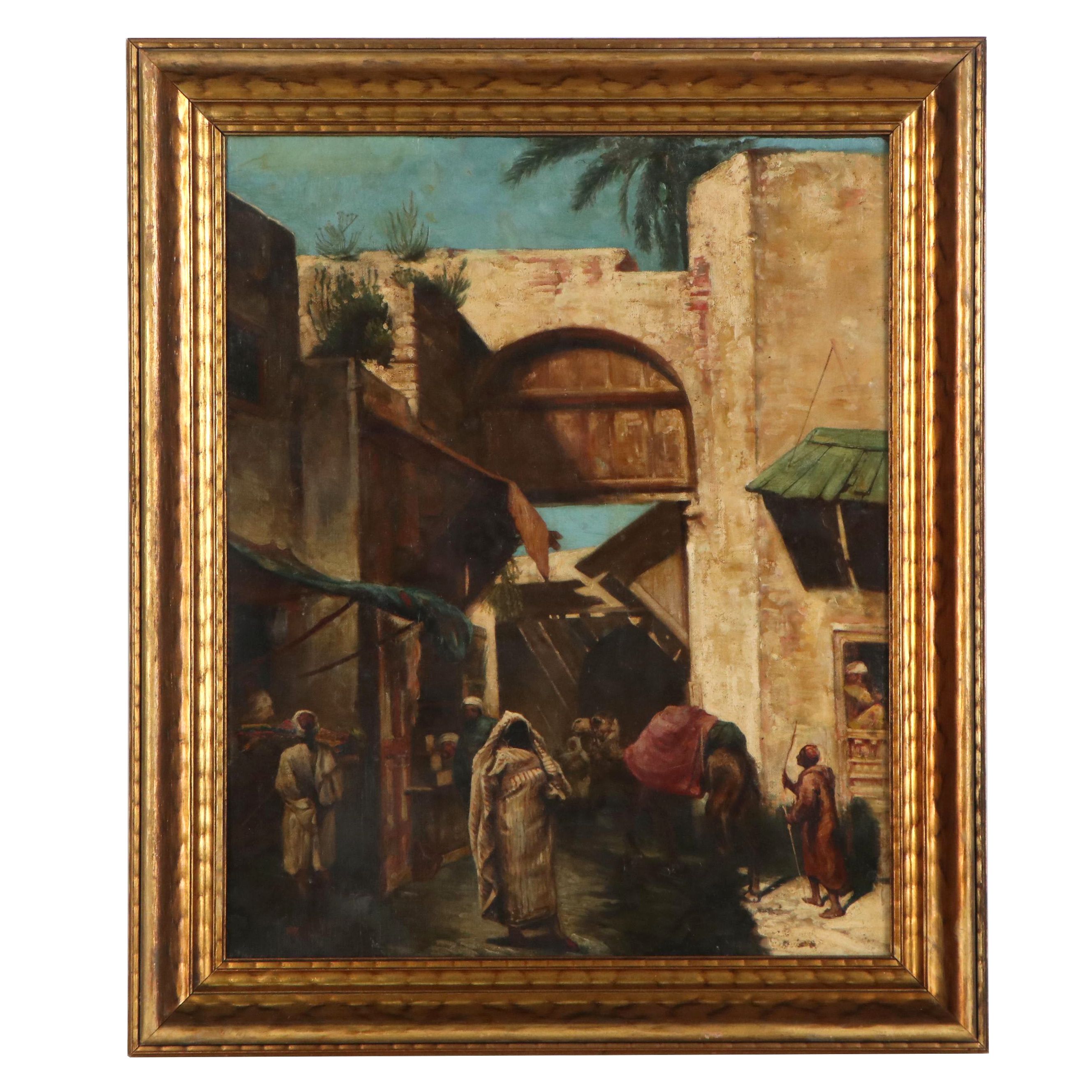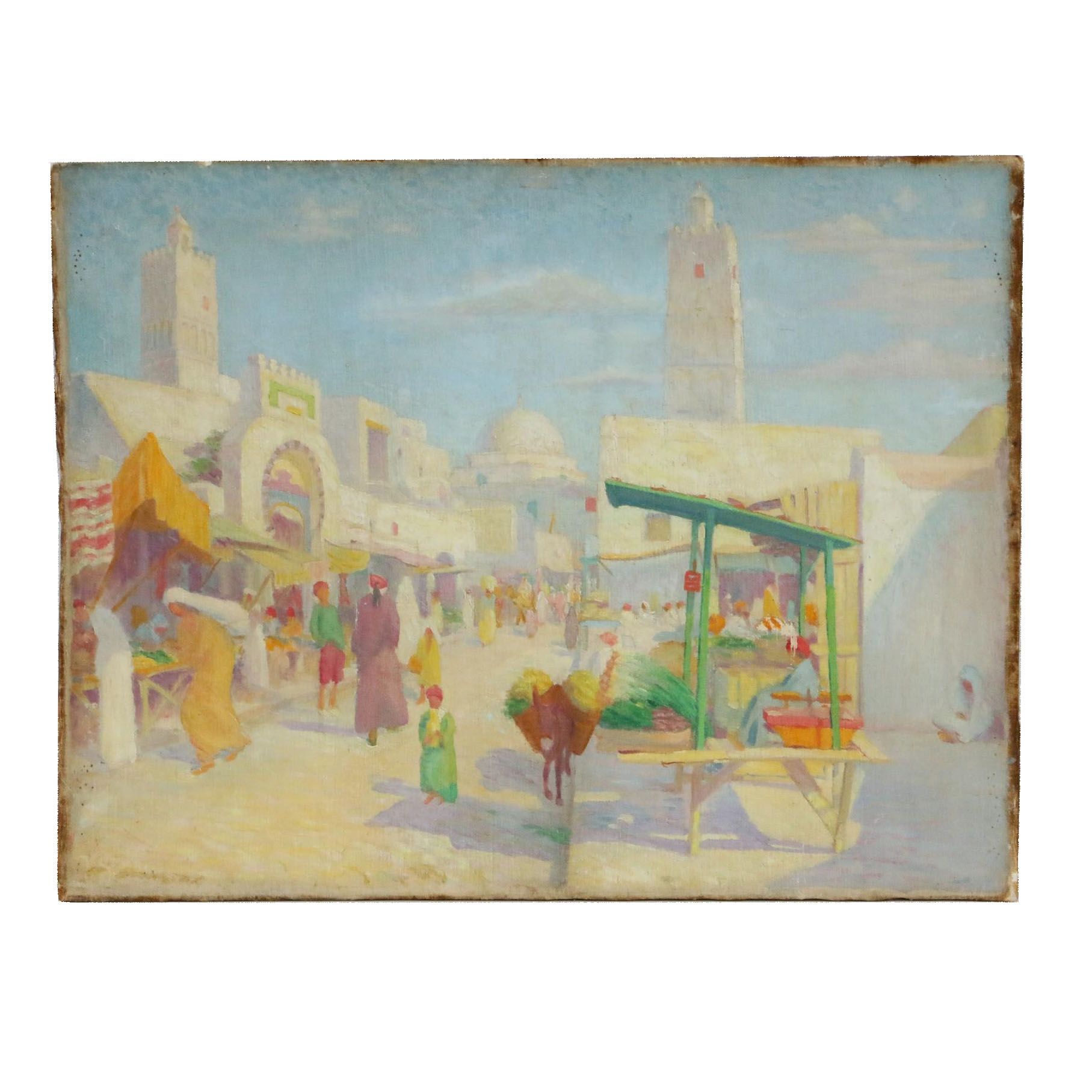 Oil Painting Of Middle Eastern Marketplace Early Mid th Century Ebth